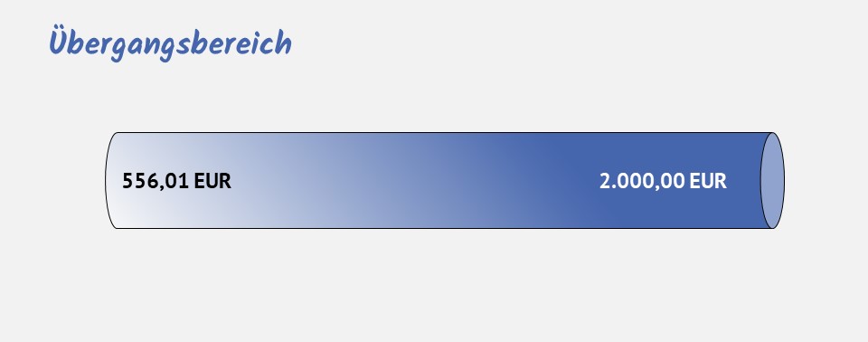 Der Übergangsbereich (ehemals Gleitzone) umfasst – aufgrund der Anhebung des gesetzlichen Mindestlohns und der damit einhergehenden Anhebung der Geringfügigkeitsgrenze – vom 1. Januar 2025 an Beschäftigungen mit einem regelmäßigen monatlichen Arbeitsentgelt von 556,01 bis 2.000,00 EUR: