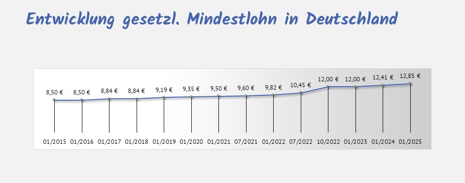 Seit dem 1. Oktober 2022 ist aufgrund der dynamisch ausgestalteten Geringfügigkeitsgrenze (vgl. Legaldefinition in § 8 Abs. 1a SGB IV) Schluss mit dem Anpassen der Arbeitszeit von Minijobbern an den jeweiligen gesetzlichen Mindestlohn, um das Eintreten von SV-Pflicht zu vermeiden. Die Geringfügigkeitsgrenze orientiert sich seither bekanntlich an einer Wochenarbeitszeit von 10 Stunden zu Mindestlohnbedingungen. Mit der Anhebung auf 12,41 EUR je Zeitstunde zum 1. Januar 2024 erhöhte sie sich auf monatlich 538 EUR, bei 12,82 EUR je Zeitstunde sind vom 1. Januar 2025 an 556 EUR maßgebend.